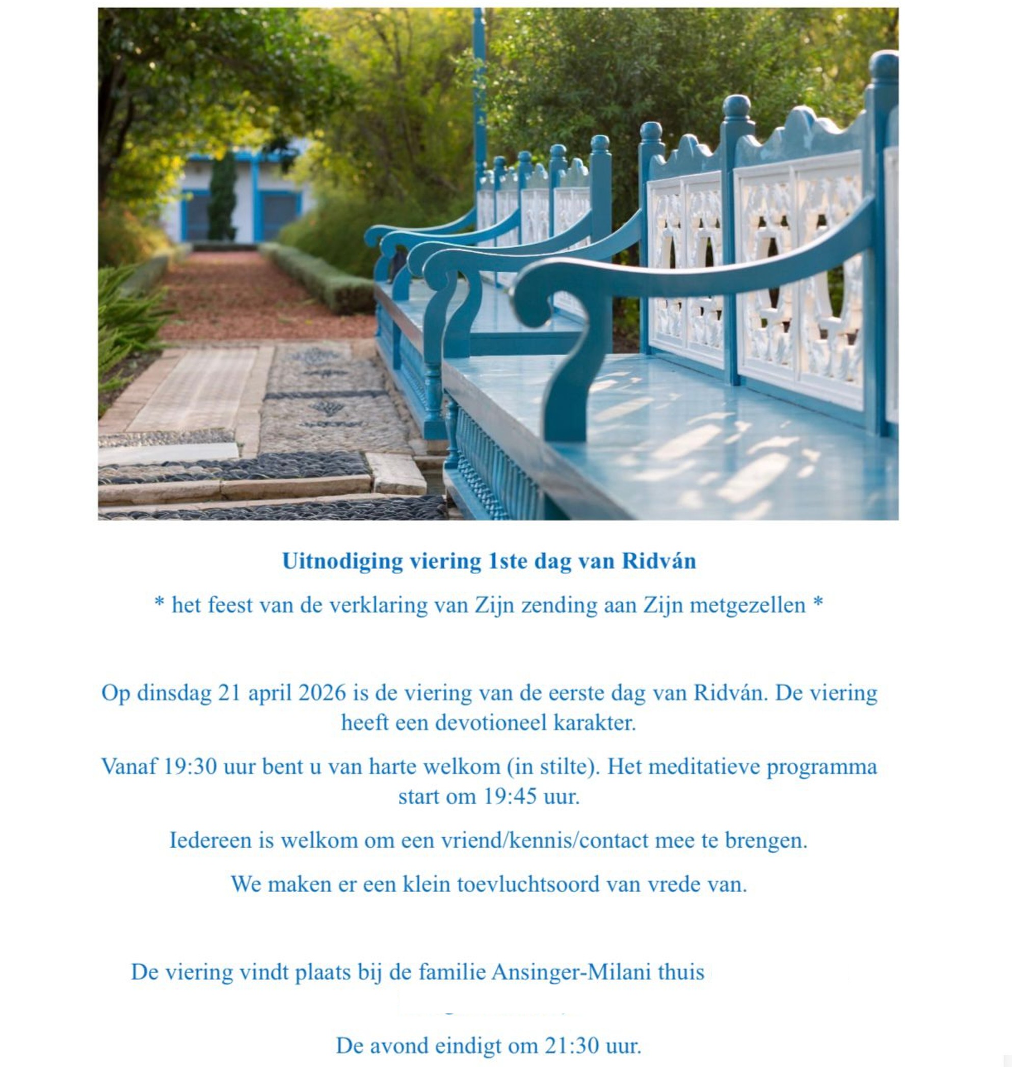 19-04-2026: Ridván viering op 21 april 2026 in Amersfoort